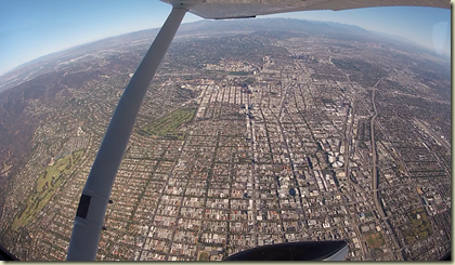 Après notre passage par la Special Flight Rules, maintenant un grand classique que tous les lecteurs de ce blog doivent connaitre par coeur, nous quittons le bassin de Los Angeles. Thibaut monte un peu pour éviter le relief et nous laissons Van Nuys sur notre droite. Un UPS nous passe juste en dessous. Tout cela est normal.